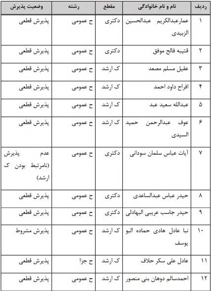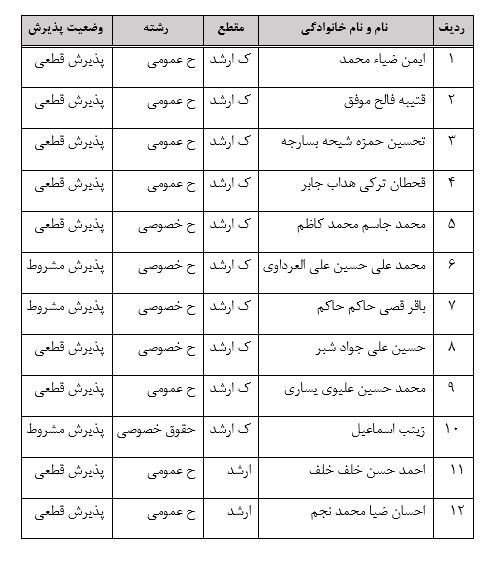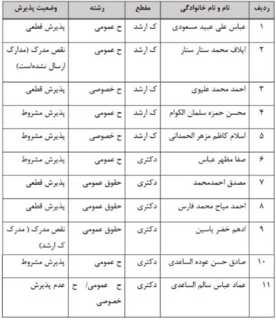 اسامی پذیرفته‌شدگان بین‌الملل، نیمسال اول 1403